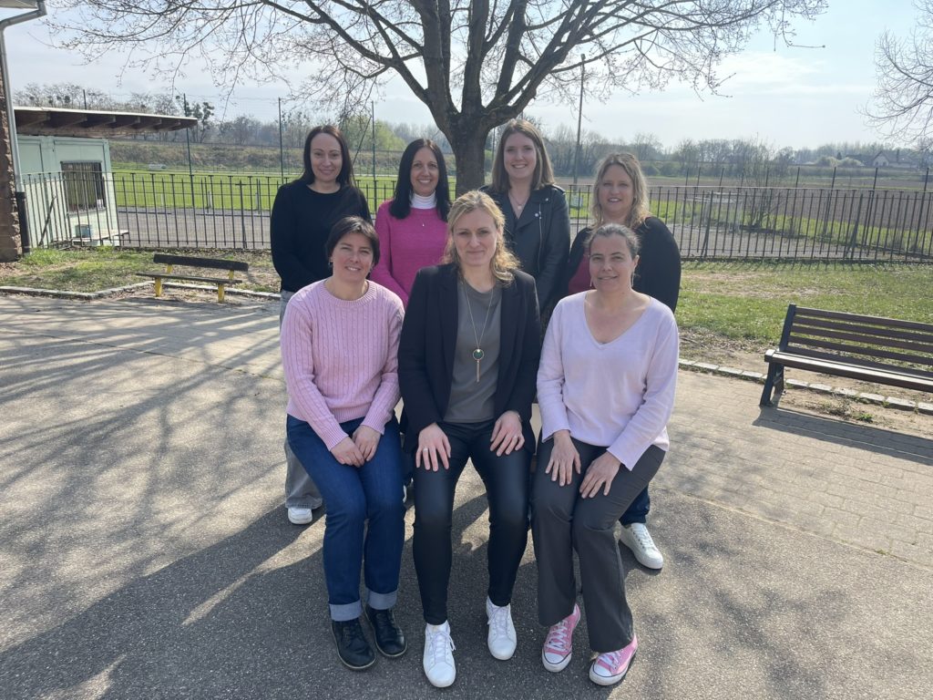 au 2ème rang : Géraldine MULLER (ATSEM), Annick KITTEL, Camille FOURNAISE et Laetitia STEINMETZ.